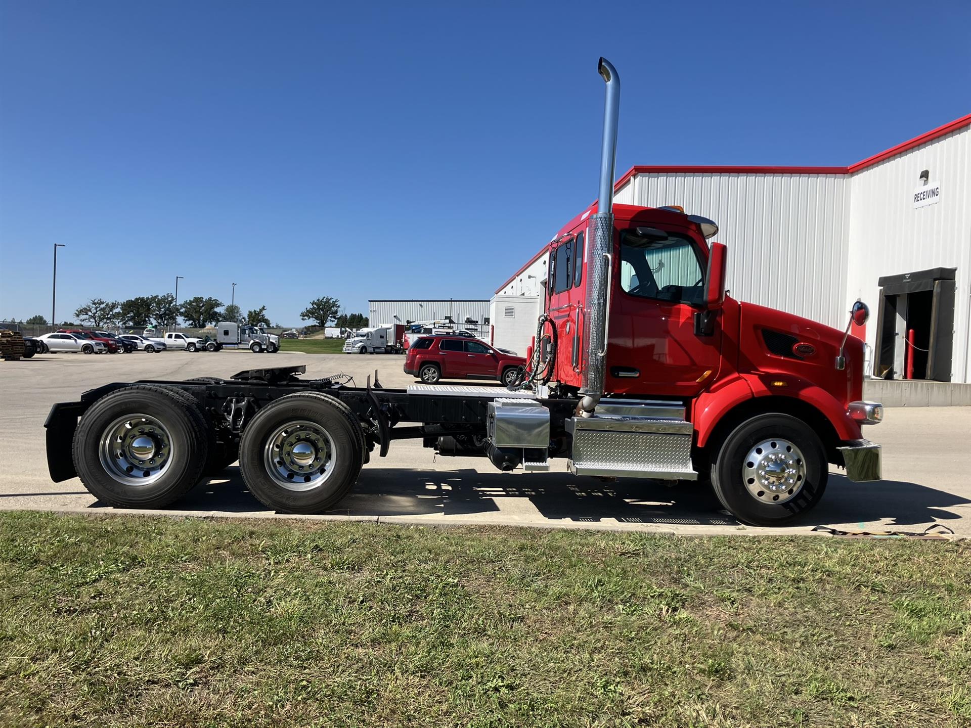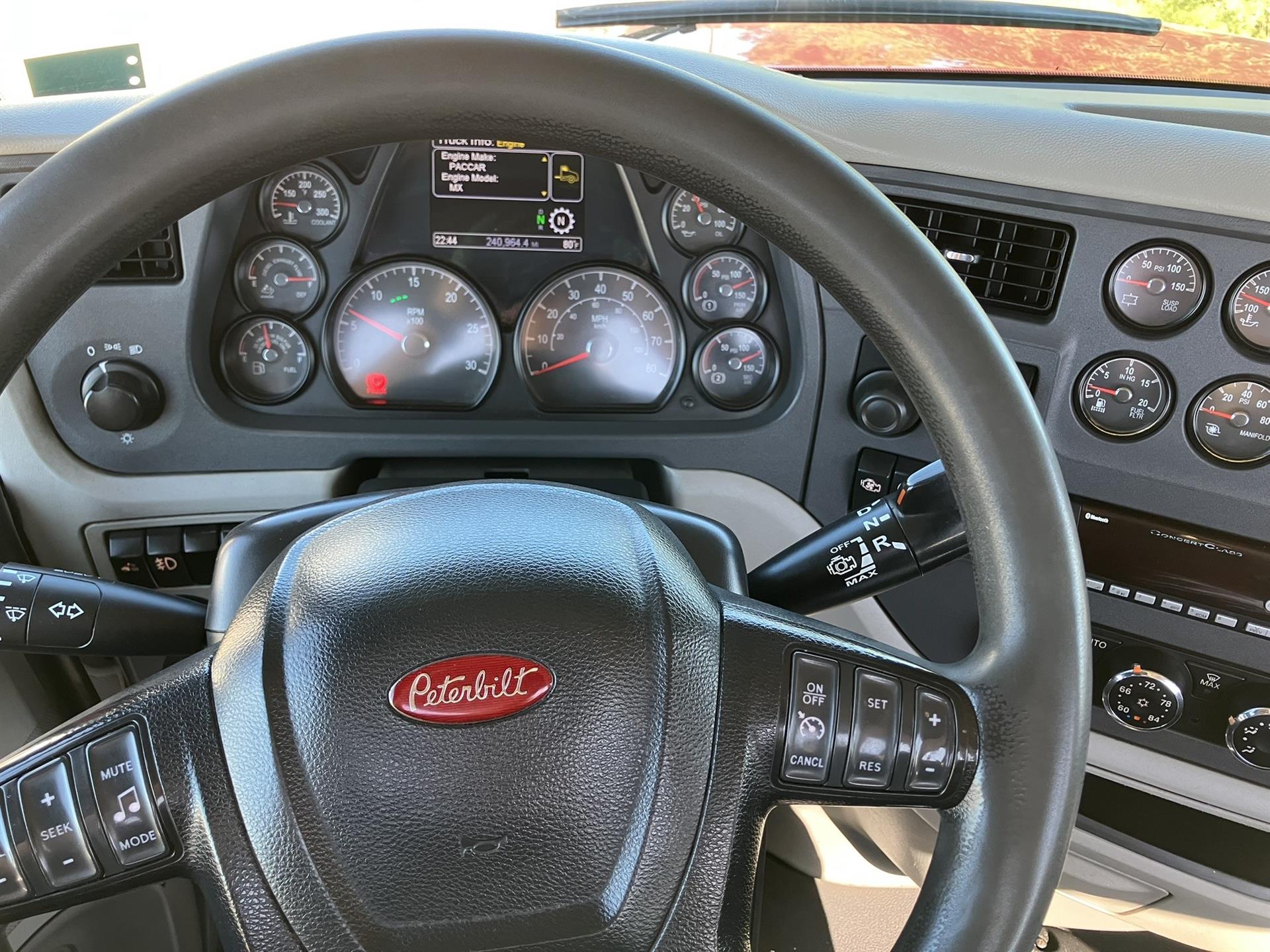 2022 Peterbilt 567 Daycab with 455HP PACCAR MX-13, 12spd Automated Transmission, 12k Front Axle, 40k Rear Axle on Low Air Leaf Suspension with 3.08 Ratio, Power Windows, Locks, and Heated Mirrors, Chrome Bumper, Sun Visor, Airslide 5th Wheel |