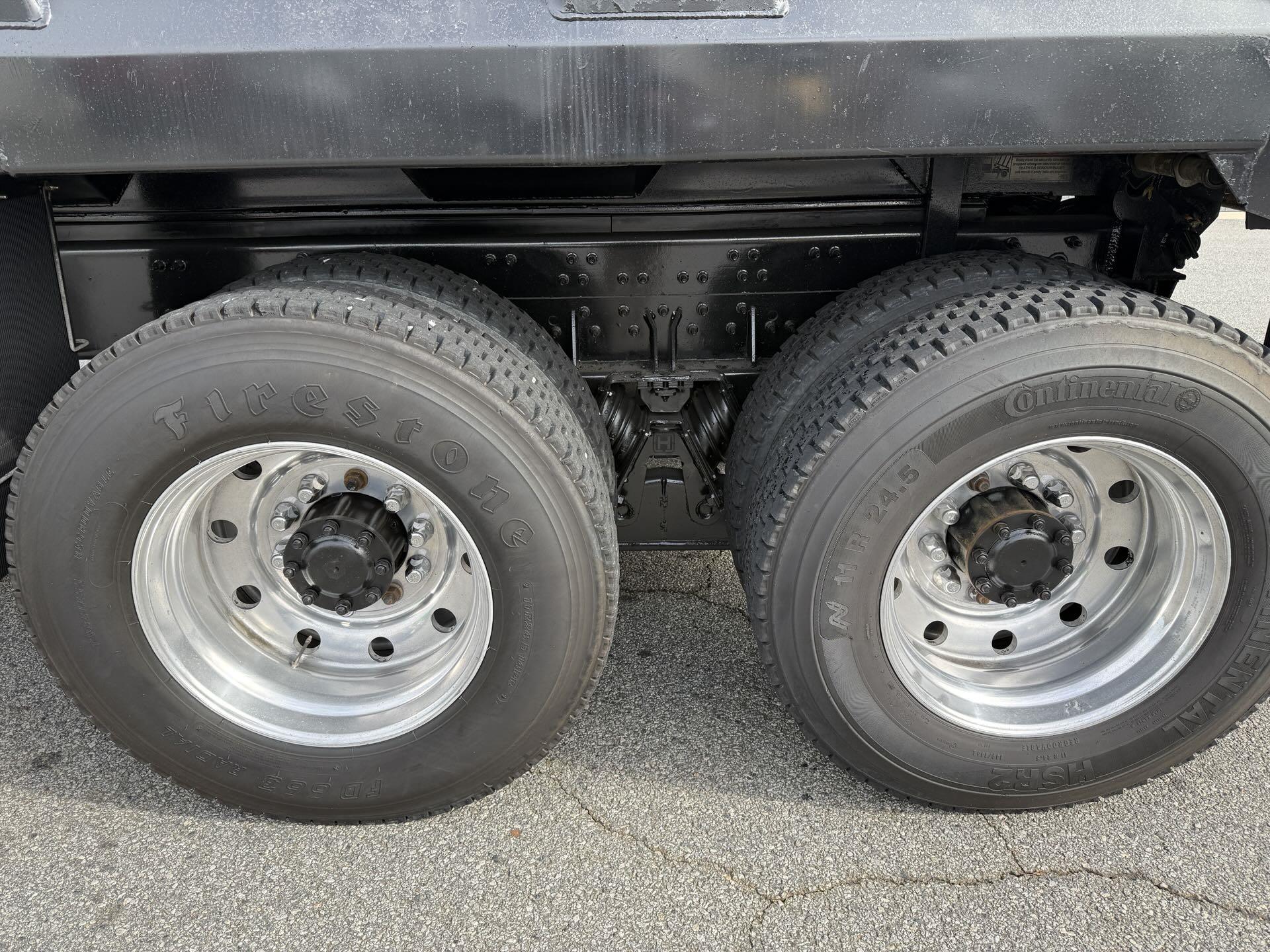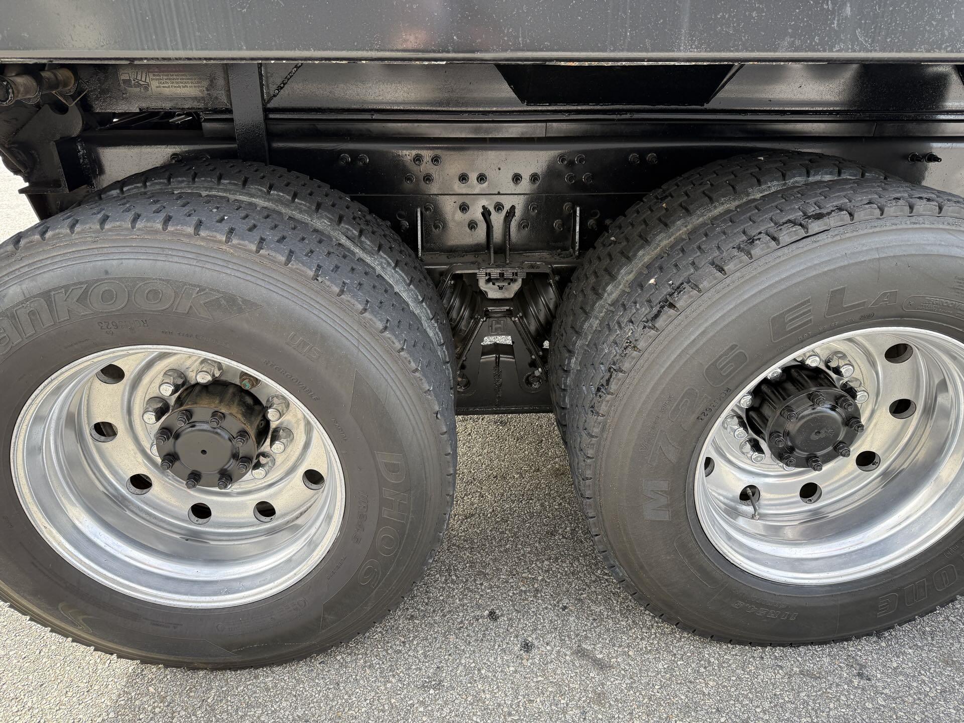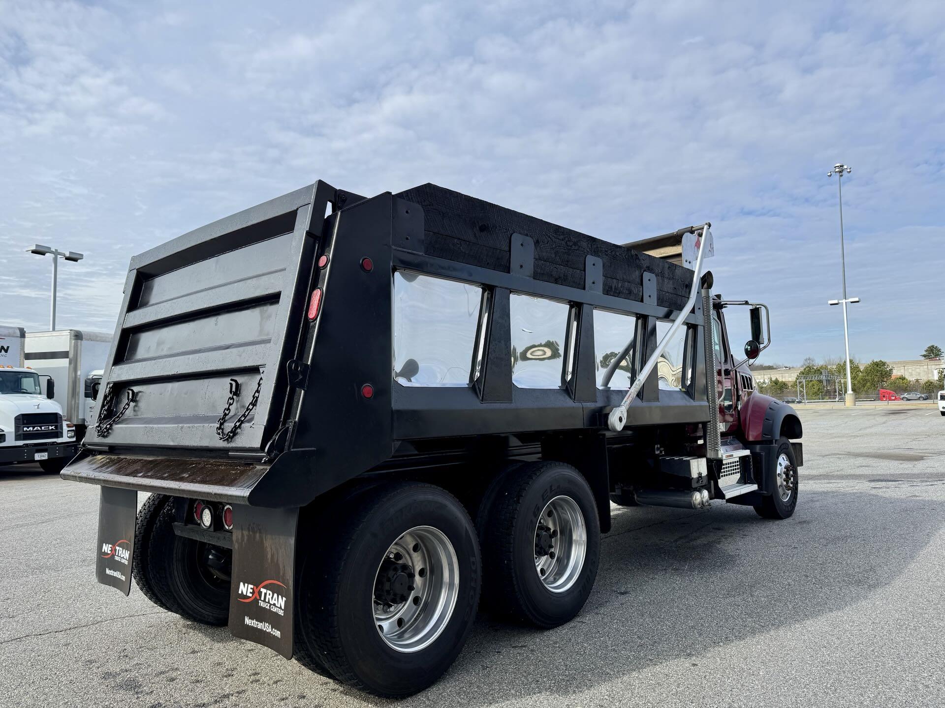 This steel-bodied beast doesn’t just haul—it handles business with a 16' dump body, electric tarp, and rear spread apron that makes unloading smoother. Packing 425hp and an automated transmission, it’s got the muscle and brains to keep your crew moving. Add heavy-duty suspension and chrome that shines like it’s showing off, and you’ve got a truck that works hard and looks good doing it |