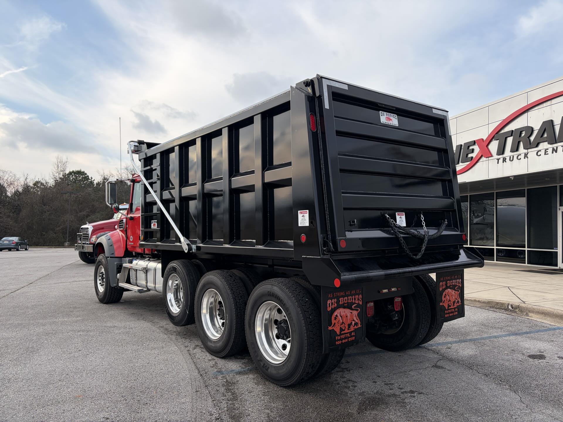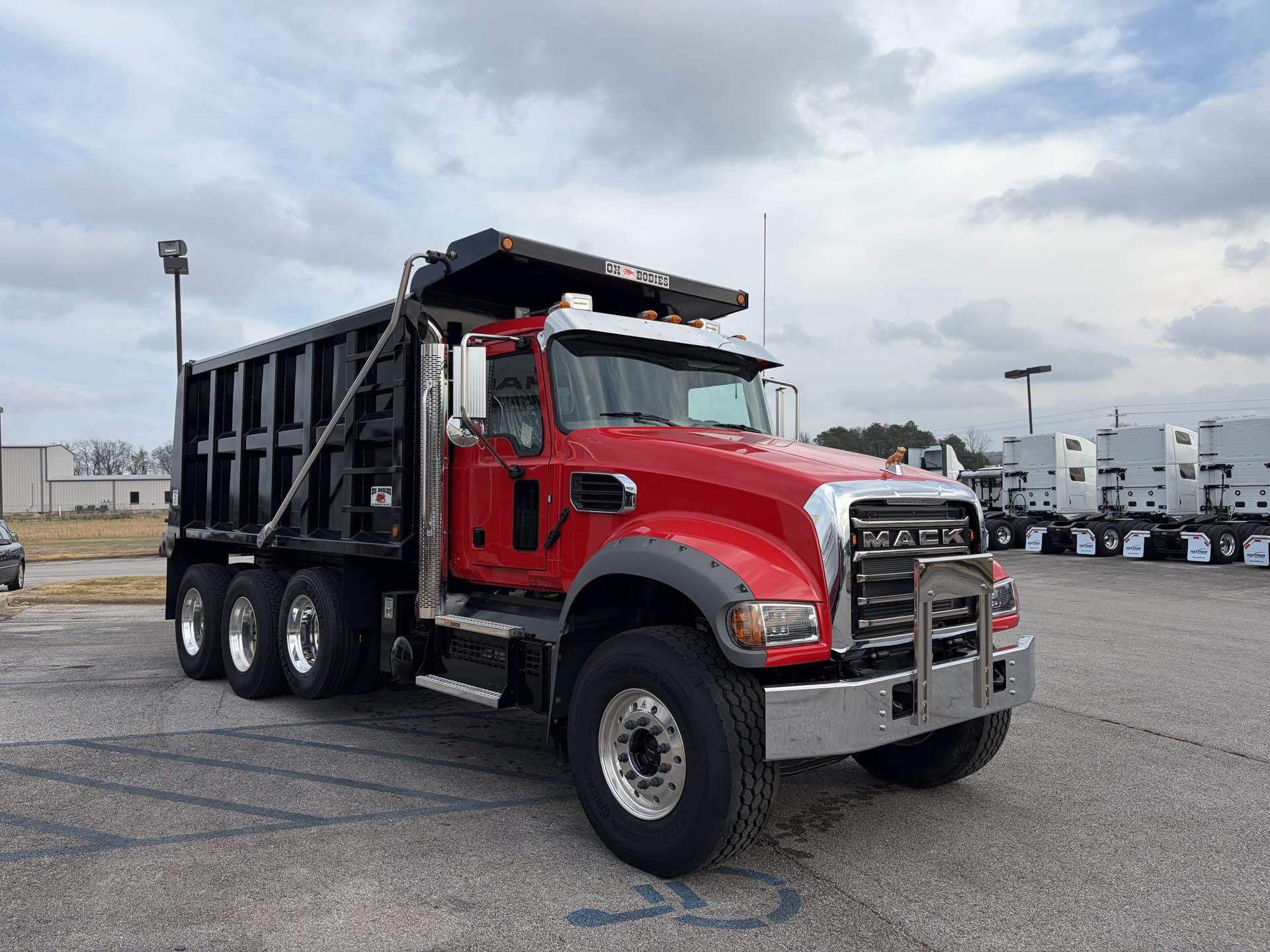 Come take a look at this New 2025 Mack Granite TriAxle Dump. The Truck has a Mack MP8 445HP, a Mack 14Spd mDrive with Crawler Gears, 20K Front Axles, 20K Pusher Axle, and Mack 46K Rears on Mack Camelback46. This truck is ALL MACK. The Body is an OX Body 16FT Long , 19/20 Yd. This truck is on the ground and bodied up. Come by and take a look or give us a call.