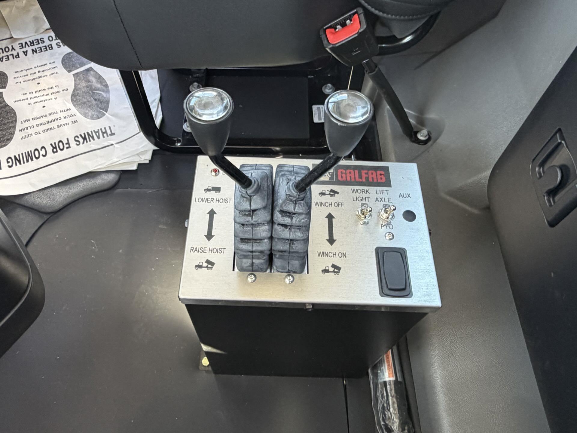 The Galfab Rolloff Body is a 60,000Lbs Cable Hoist, 23.3Ft frame length, with a Pioneer Electric Tarp.