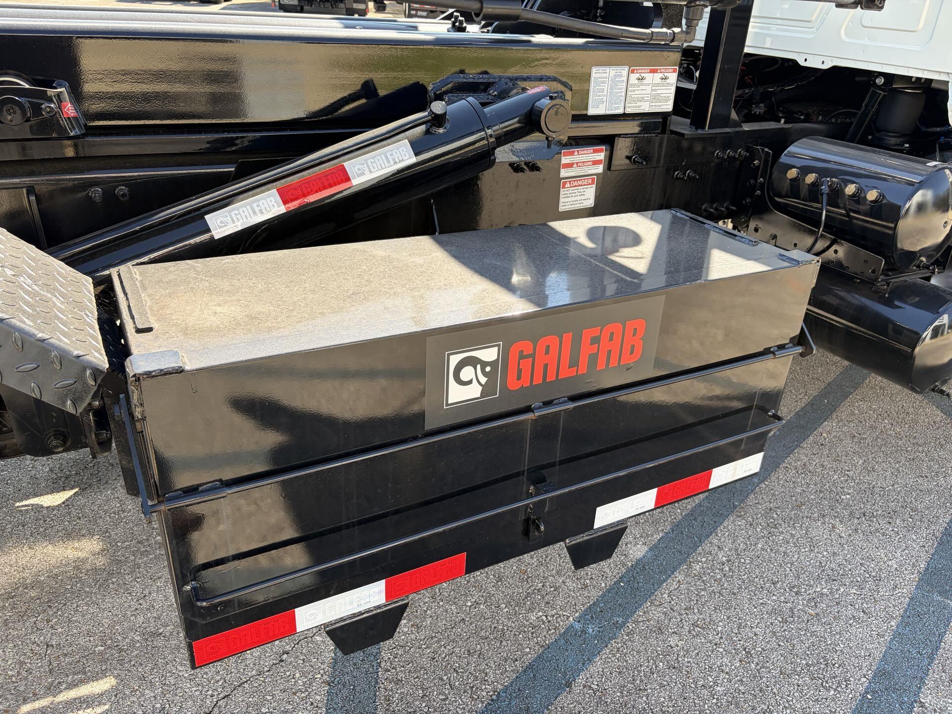 2025 Mack Granite Tri-Axle with Galfab 60,000 Lbs Cable Lift Rolloff bodied up and on the ground. This truck has a MP8 455HP with mDrive 14spd with Creeper Gears, with 20K fronts, 13K lift Axle, 46K rears on Camelback Susp. This truck is All Mack!