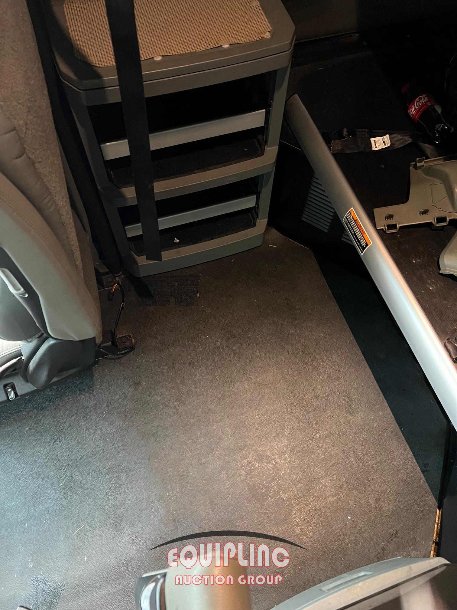 PASSENGER SIDE TOOL BOX IS STRAPED DOWN