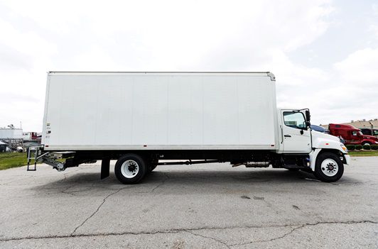 Cummins 6.7 260HP Allison 2500RDS 26' Smyrna Box With Lift Gate and Ramp trans roof 16" Scuff with plywood back 3 row e-track slat lined 16' pull out walk ramp