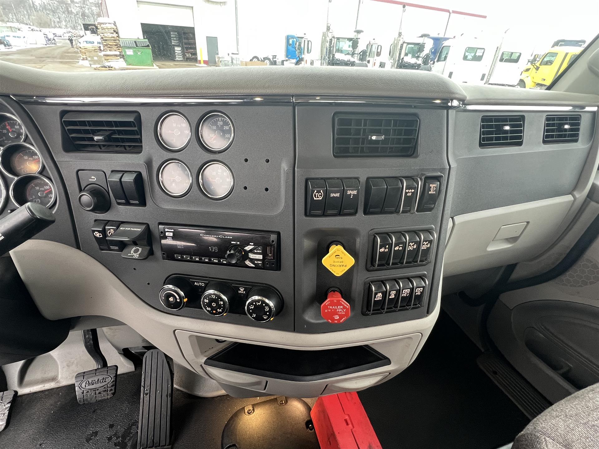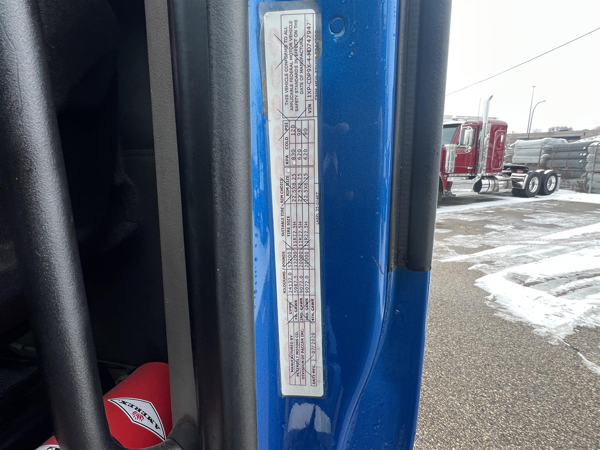 2021 Peterbilt 567 Daycab, 510hp Cummins X15, 13spd manual transmission, 13.2k front axle, 40k rears on Peterbilt Low Air Leaf suspension with 3.36 gears, 120gal fuel capacity, 189'' wheelbase, polished bumper, polished lighted sunvisor, power windows/locks/heated mirrors, cloth interior |