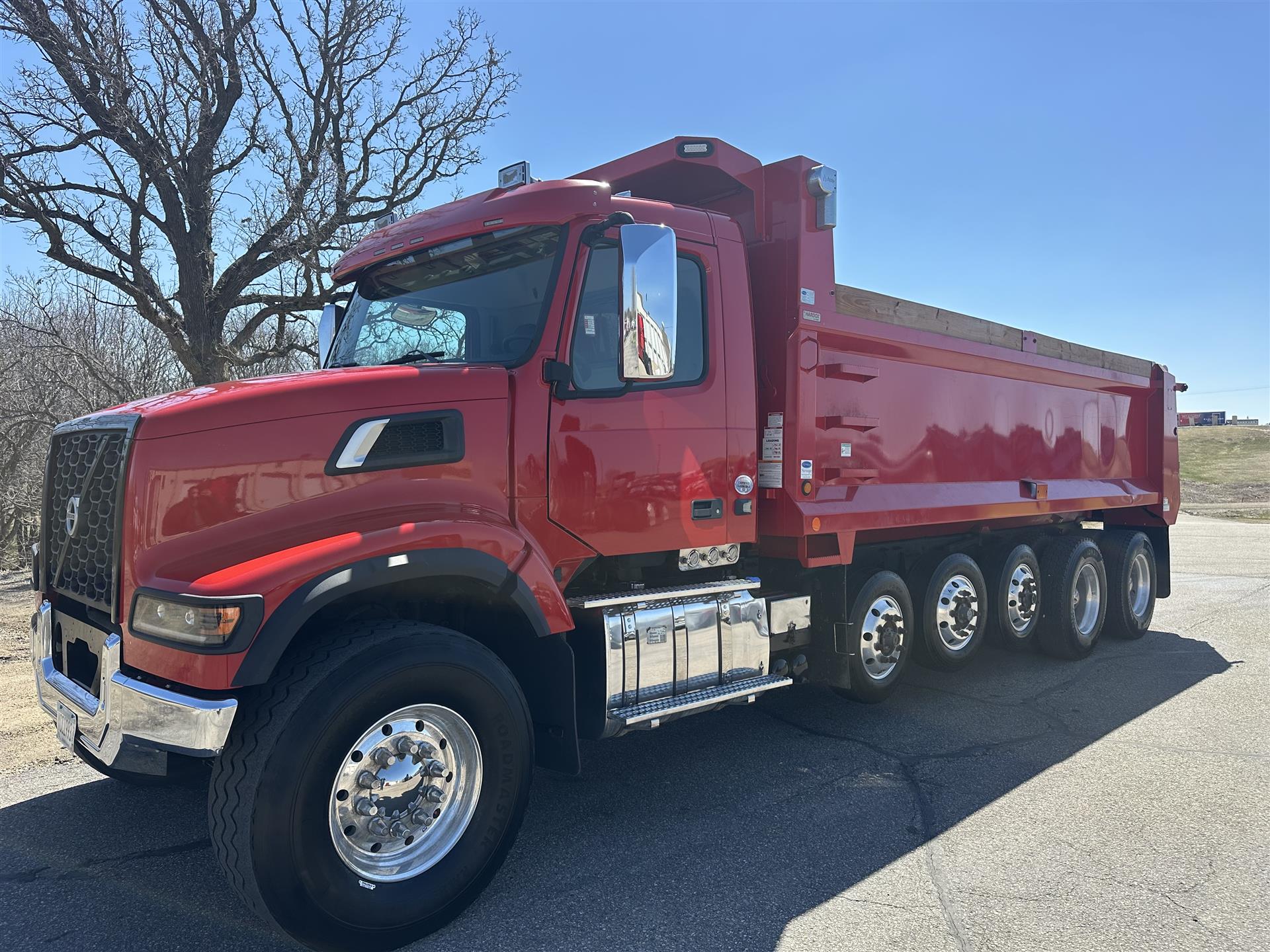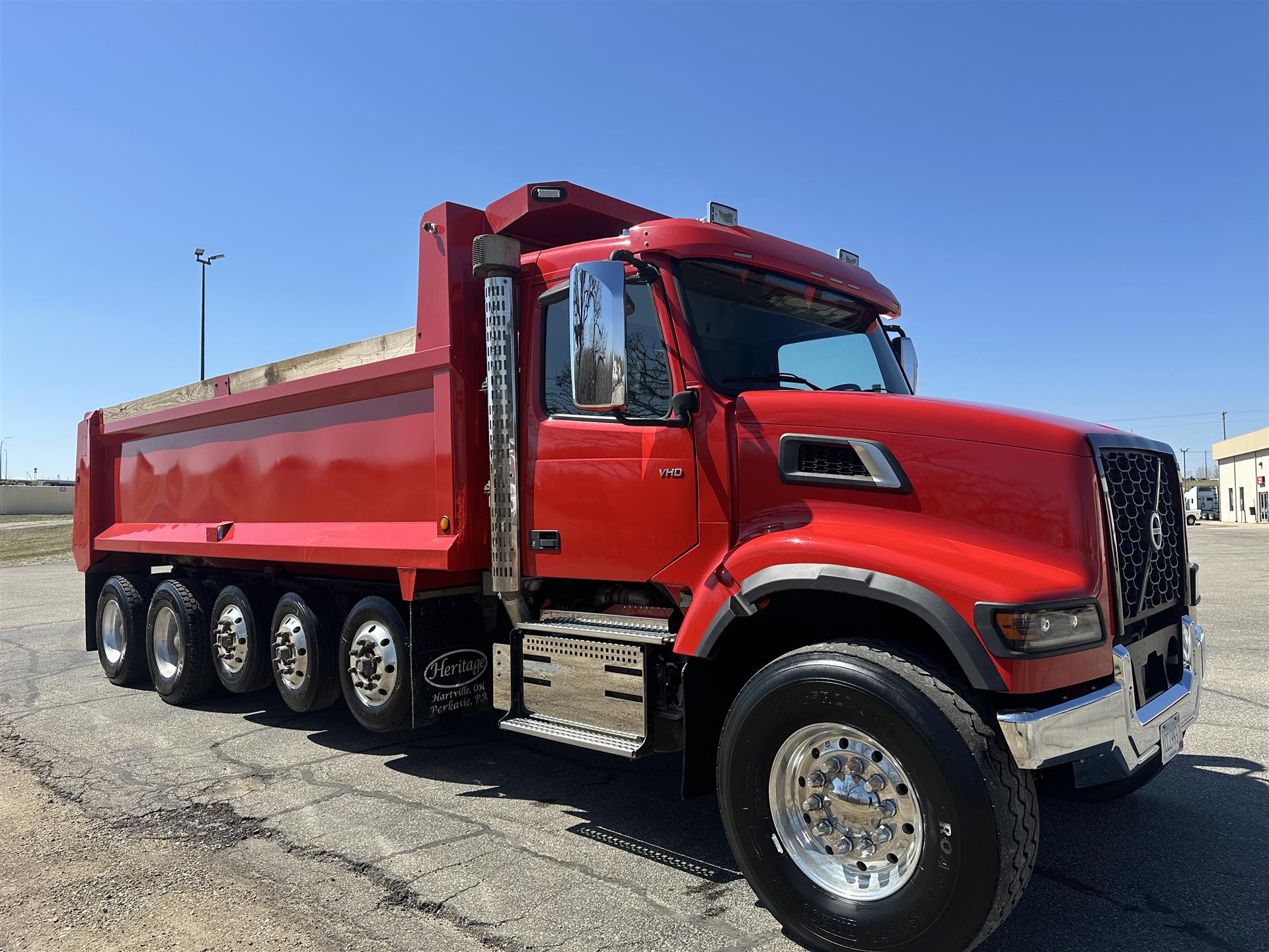 2022 Volvo VHDF300 Quint Axle Dump Truck, Volvo D13 Engine 435HP, Allison 4500 Transmission, 20,000lb Front Axle, 46,000lb Rear Axle 3.91 Ratio, Power Windows, Power Locks, Heated Mirrors, Full Locking Rear End, Chrome Polished Battery Box Cover, Stainless Steel Fuel Tank Straps, Chrome Bumper, Polished Chrome Aftertreatment Cover, 21'6" Heritage Body, Heated Body, Vibrator, Strobe Lights, Pull Plate and Pintle Hitch. |