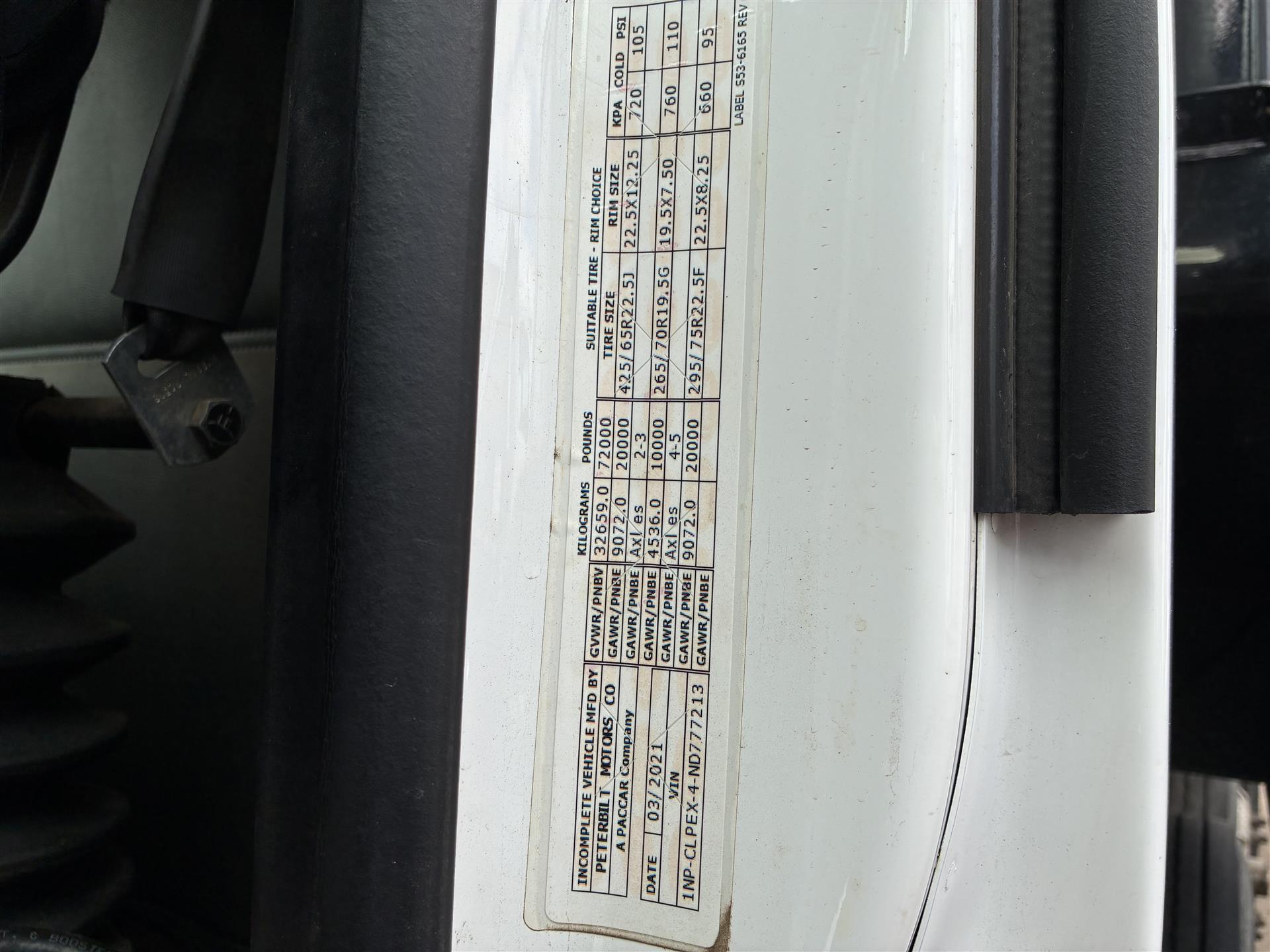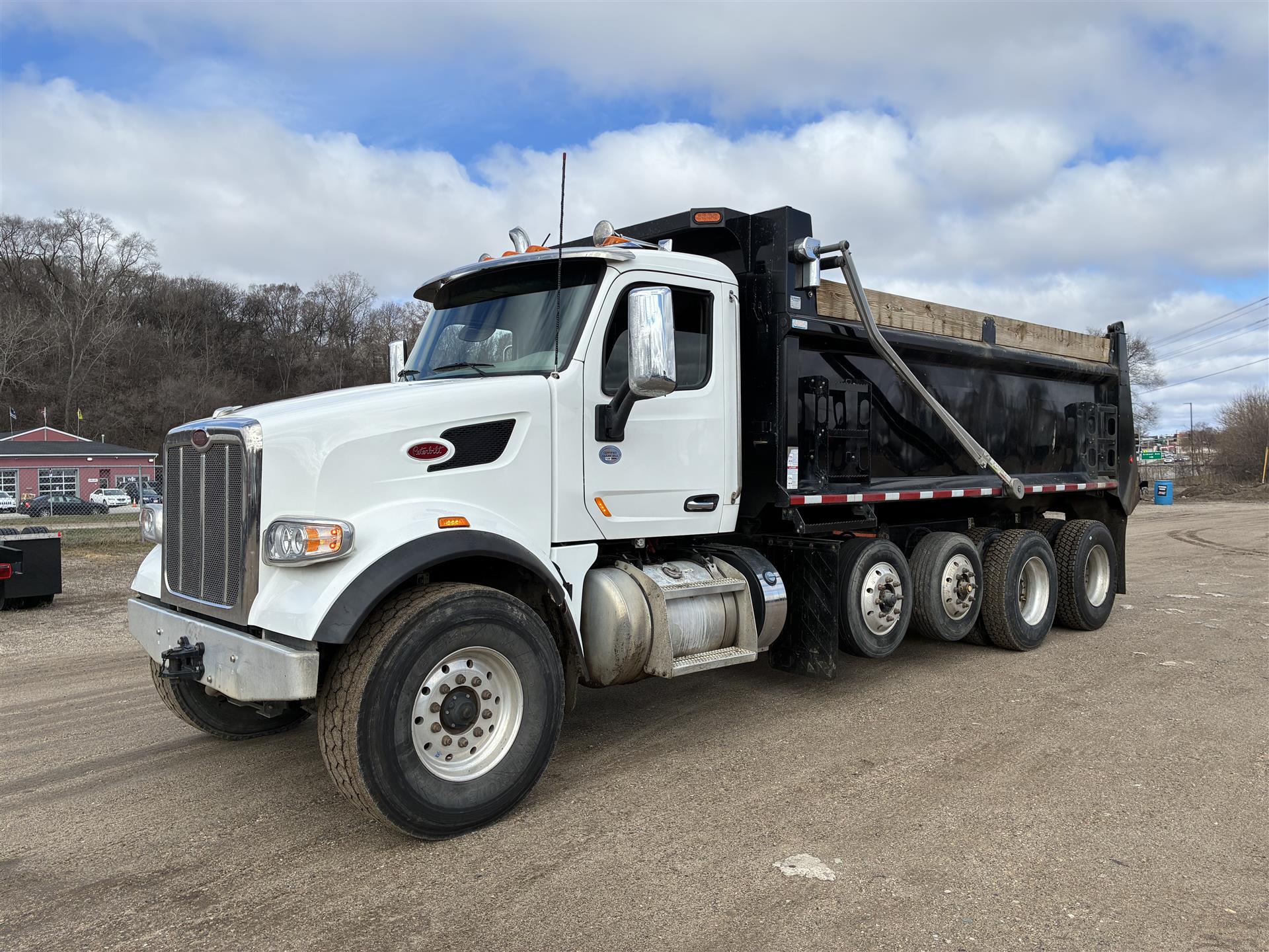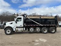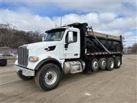 2022 Peterbilt 567 Quad-axle Dump Truck, 455hp Paccar MX-13, Allison transmission, 20k front axle, 40k rears on Peterbilt Air Trac suspension, two 10k Watson-Chalin self-steering pushers, 4.33 gears, 90gal fuel capacity, 256'' wheelbase, gray cloth interior, power windows/locks/heated mirrors, Brandon 19'x48''x60'' dump body, air gate, sun visor |