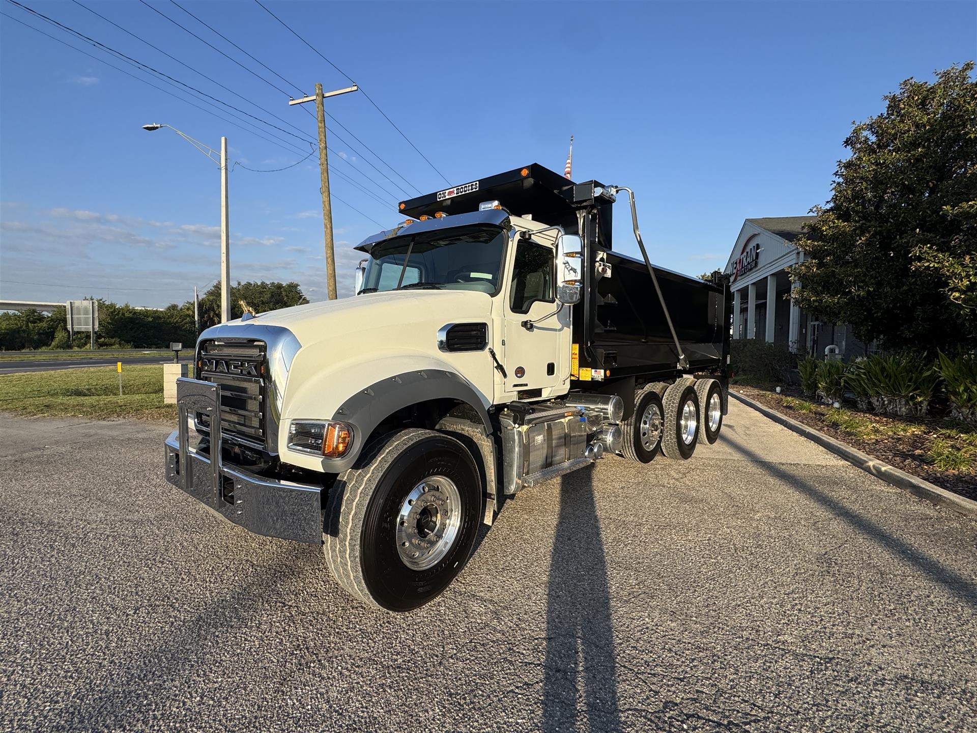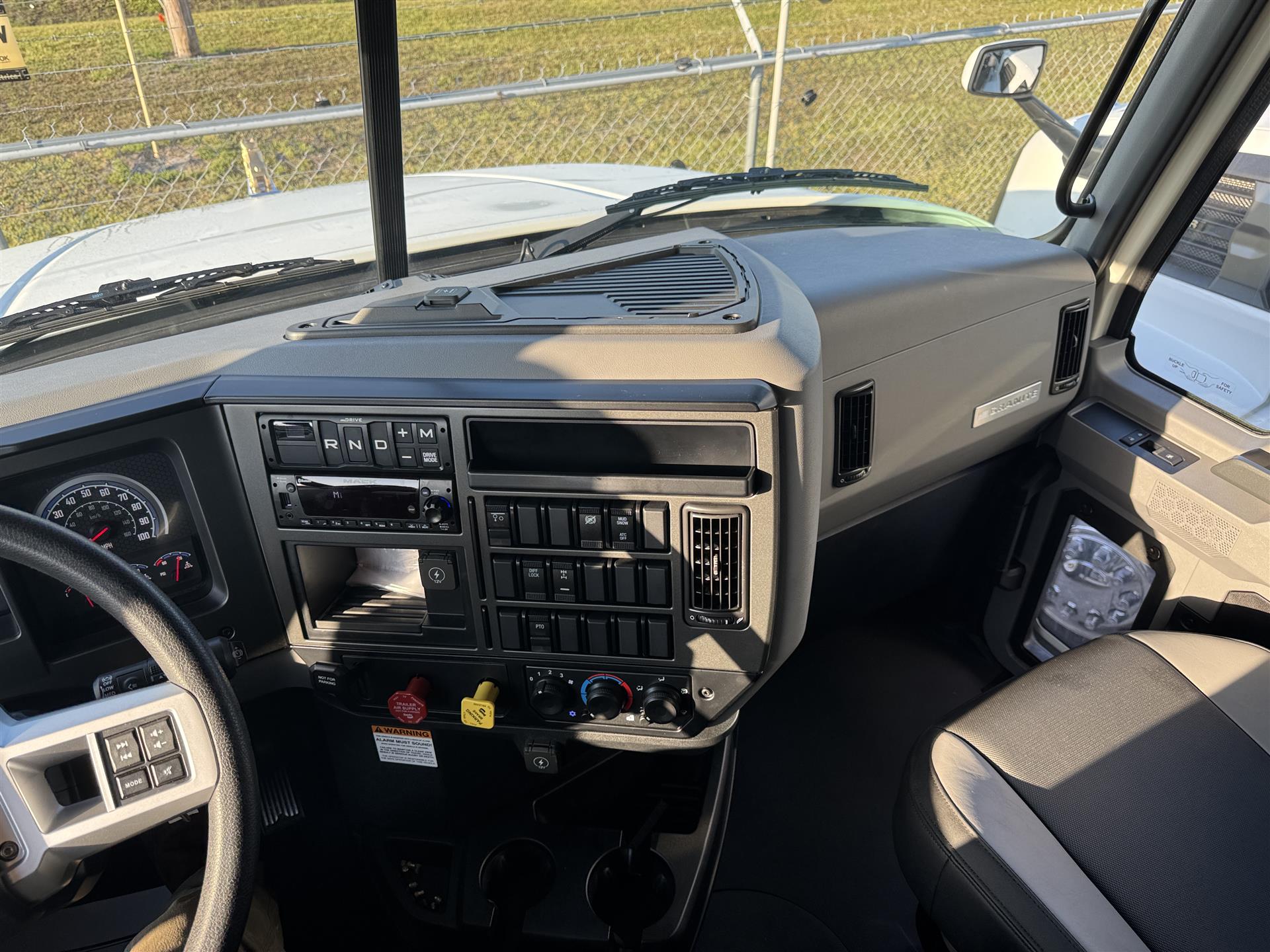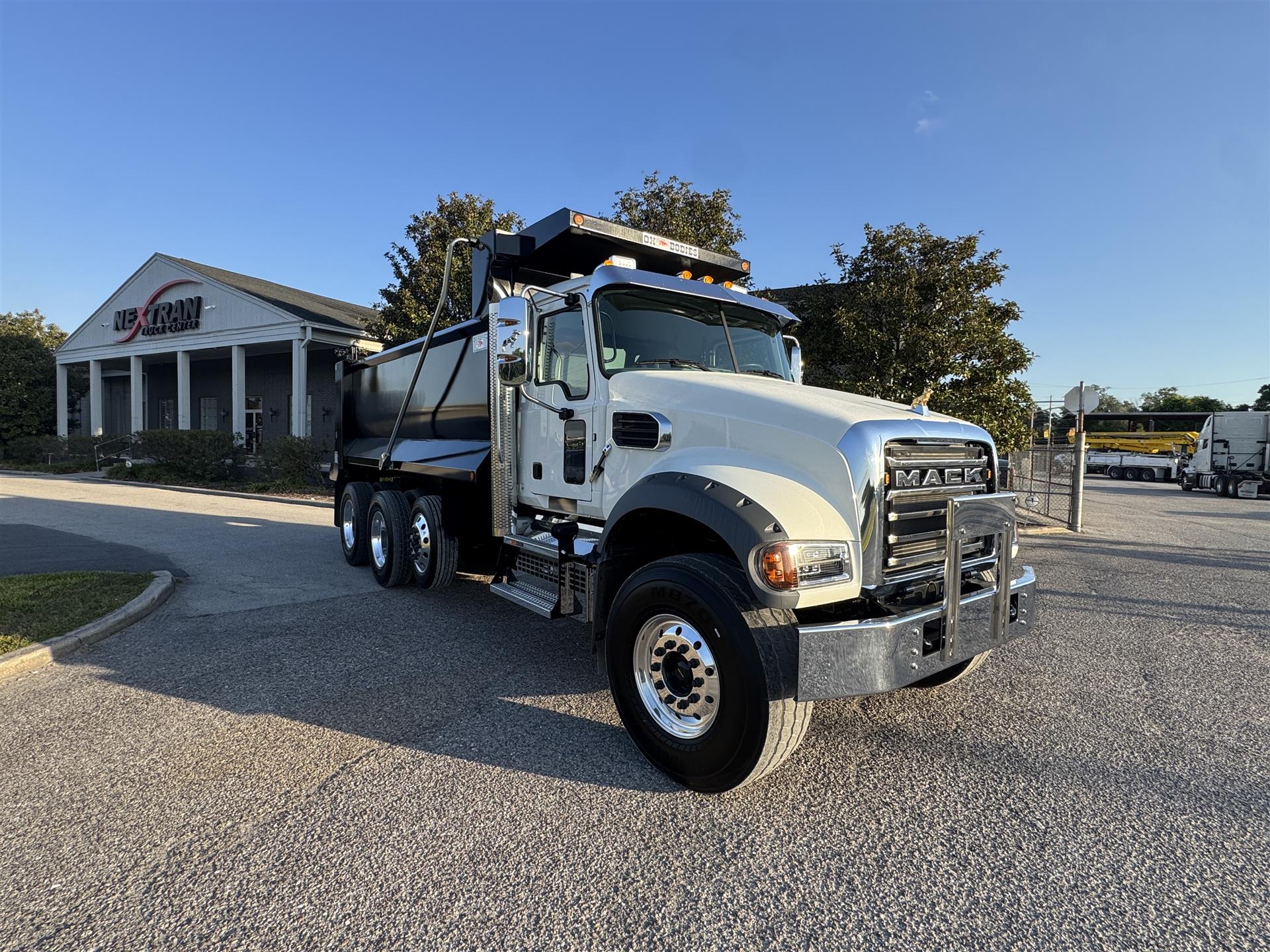 COME AND GET IT!MACK MACK MACK (GOLD DOG)ENGINE: MP8-415C MACK 415HP @ 1400-1700 RPM (PEAK) 2100 RPM (GOV) 1650 LB-FTMACK TRASNMISSION: TMD13AFO-HD mDRIVE HD 13 SP, CREEPER/ MULTI-SPEED REVERSE (OVERDRIVE) FRONT AXLE: 18000# (8200 KG) MACK FXL18 FRONT BRAKES: MERITOR EX+ AIR DISC BRAKES 430MM (17") H-TYPE REAR AXLE: 46000# (20900kg) MACK S462R CAST DUCTILE IRON HOUSING REAR SUSPENSION: MACK mRIDE 46 PARABOLIC 3-LEAF, 46,000 lb, STANDARD DUTY (17" ARTICULATION) REAR BRAKES: MERITOR "S" CAM 16.5"x7" Q+ LIFT AXLE: HENDRICKSIN 13.0K COMP. EXS13 STEER/LIFTABLE PUSHER AXLE ALL ALUMINUM WHEELS FRONT TIRES: 425/65R22.5 L BRIDGESTONE M870 REAR TIRES: 11R24.5 G BRIDGESTONE M760 |