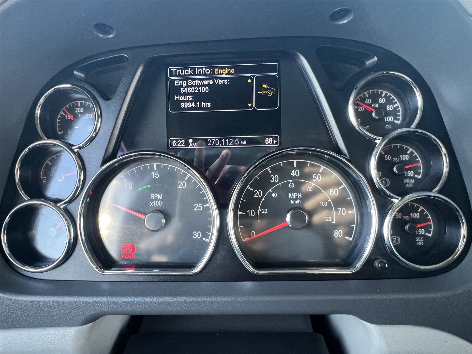 2022 Peterbilt 567 Sleeper, 80'' Raised Roof, 450hp Cummins X15, 13spd Eaton manual transmission, 13.2k front axle, 40k rears on Peterbilt Low Air Leaf suspension, 3.36 ratio, 260'' wheelbase, 245gal fuel capacity, chrome visor, chrome bumper, Holland 24'' airlside 5th wheel, Premier interior package, power windows/locks/heated mirrors |