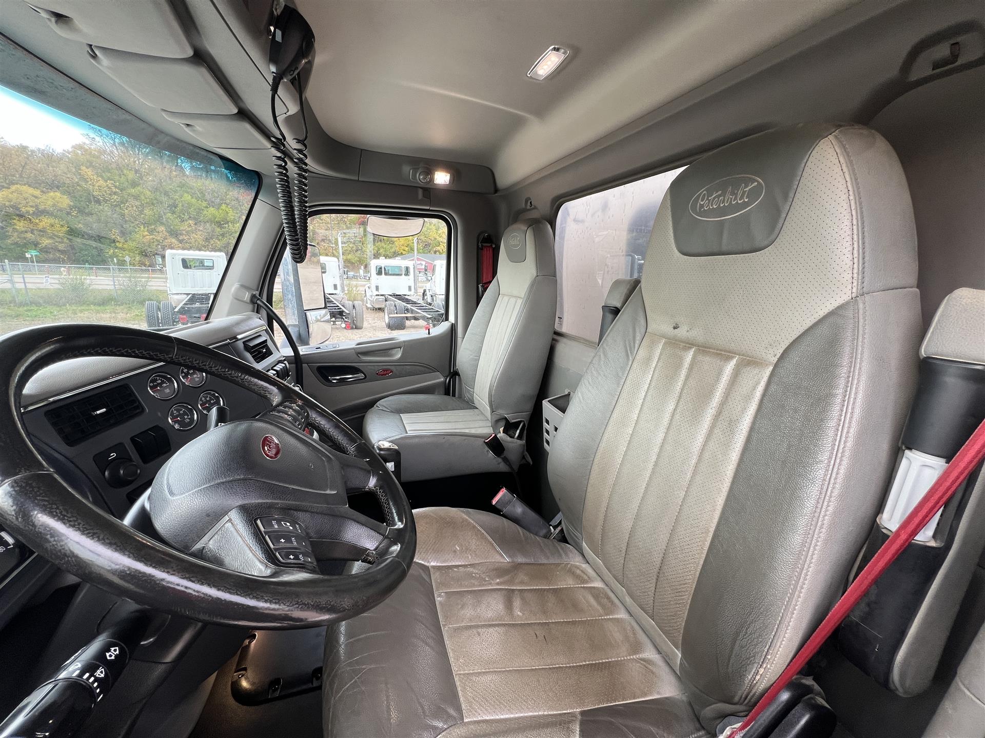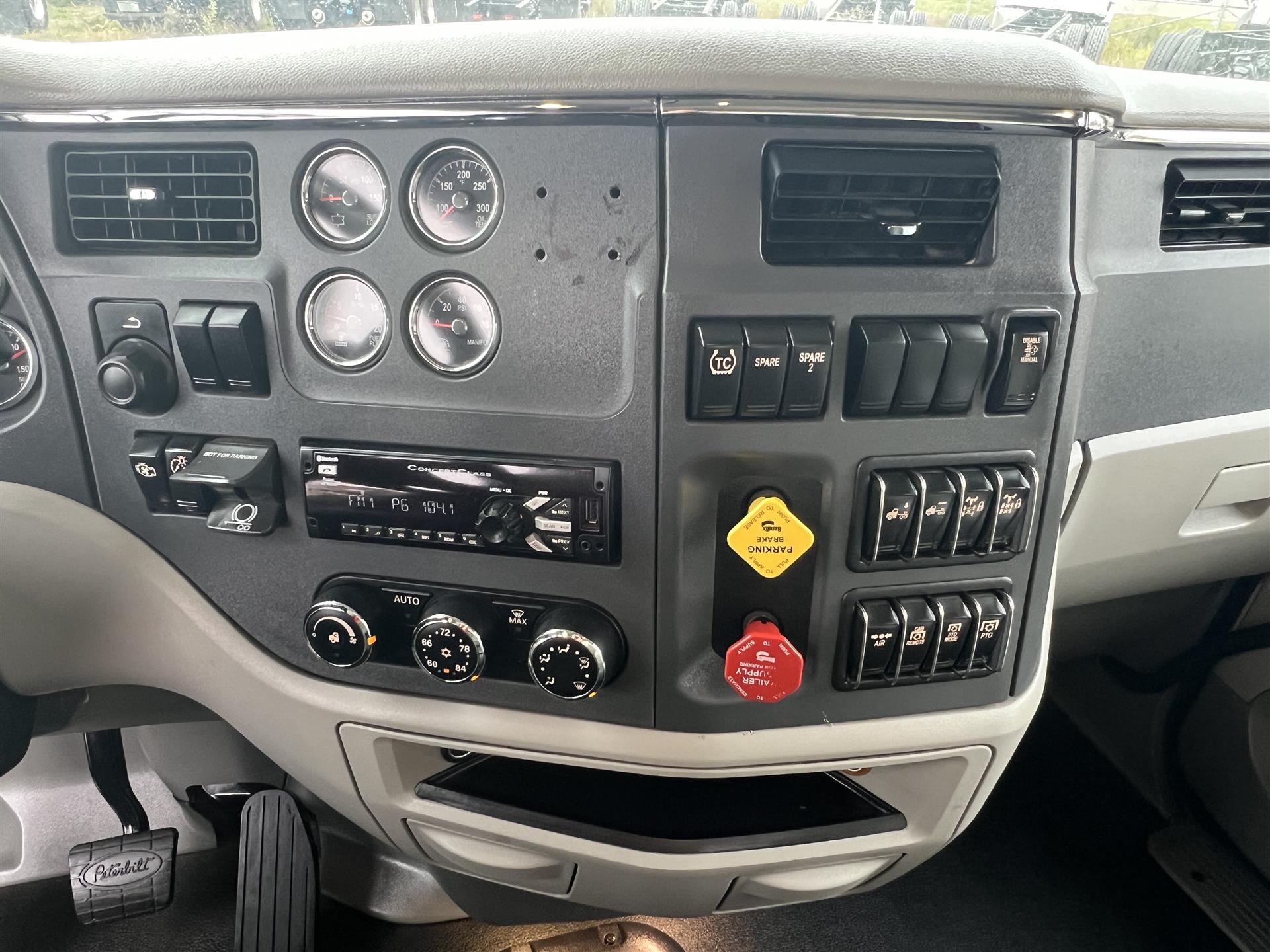 2021 Peterbilt 567 Daycab, 510hp Paccar MX-13, 18spd manual transmission, 12k front axle, 40k rears on Peterbilt Low Air Leaf suspension with 3.27 ratio, 200gal fuel capacity, set back front axle, polished bumper and sun visor, single side of cab exhaust, power windows/locks/heated mirrors |
