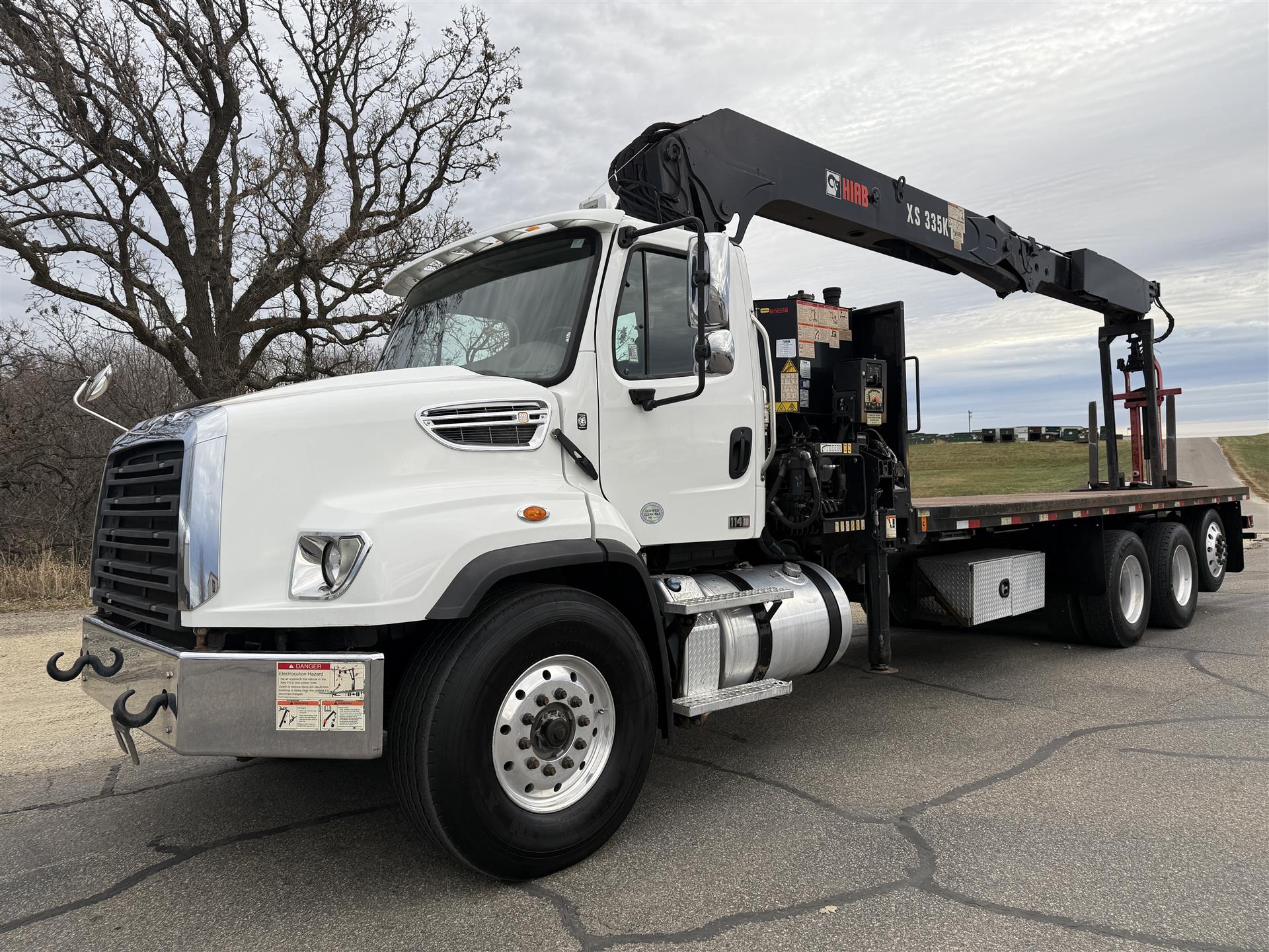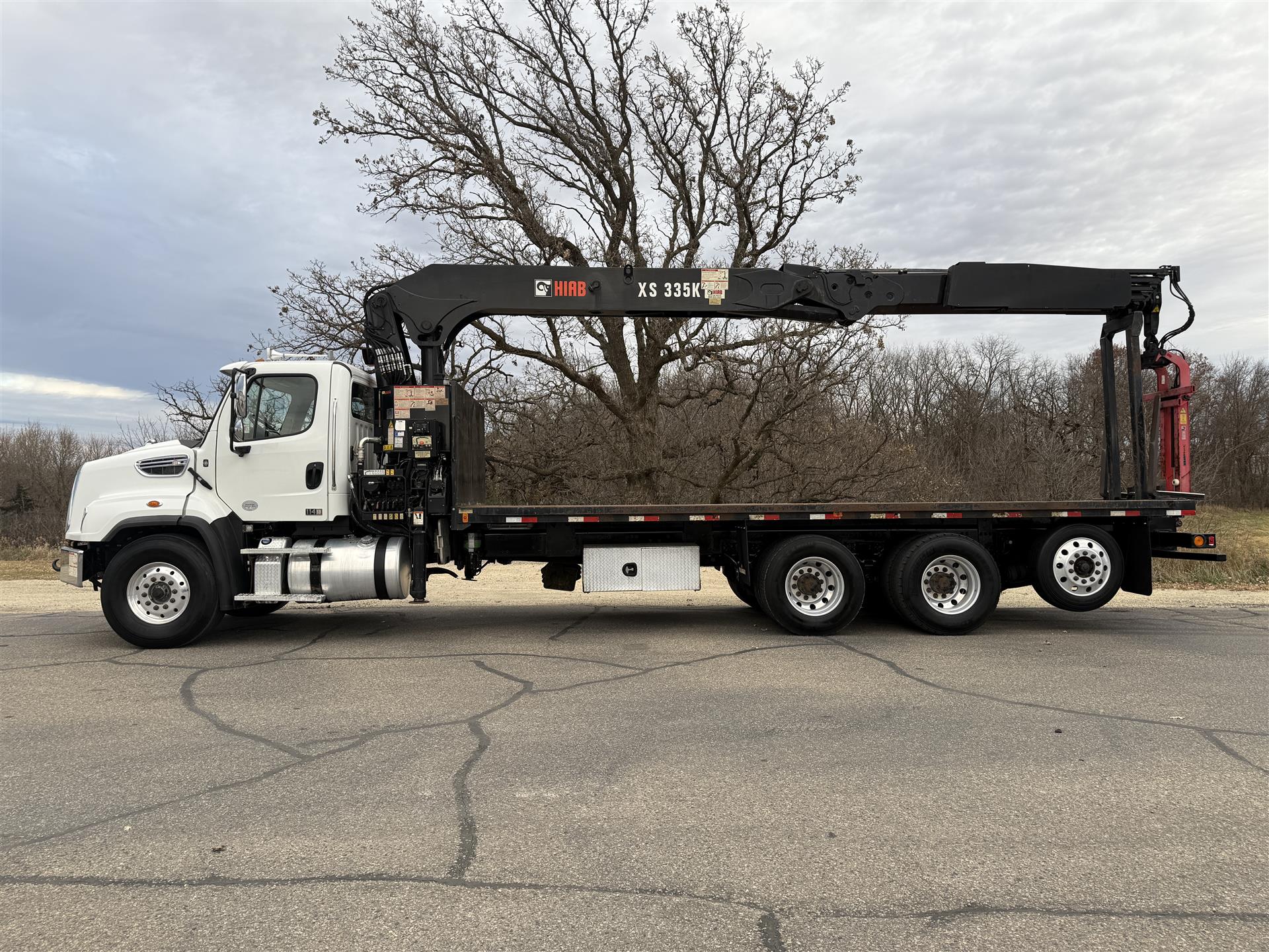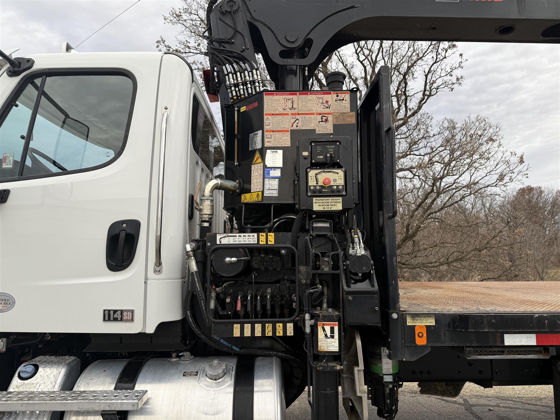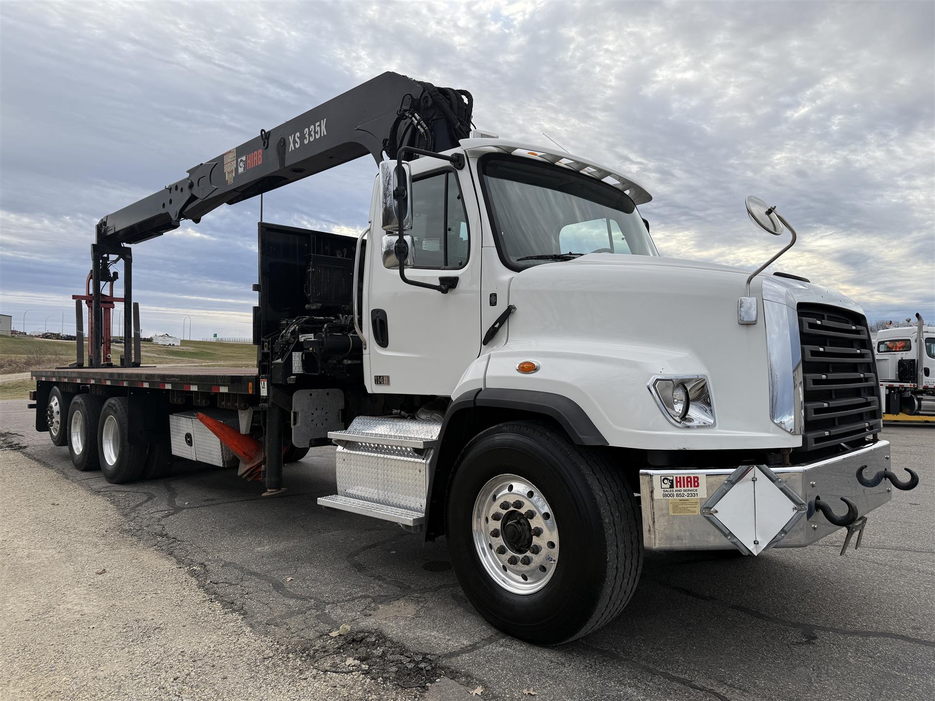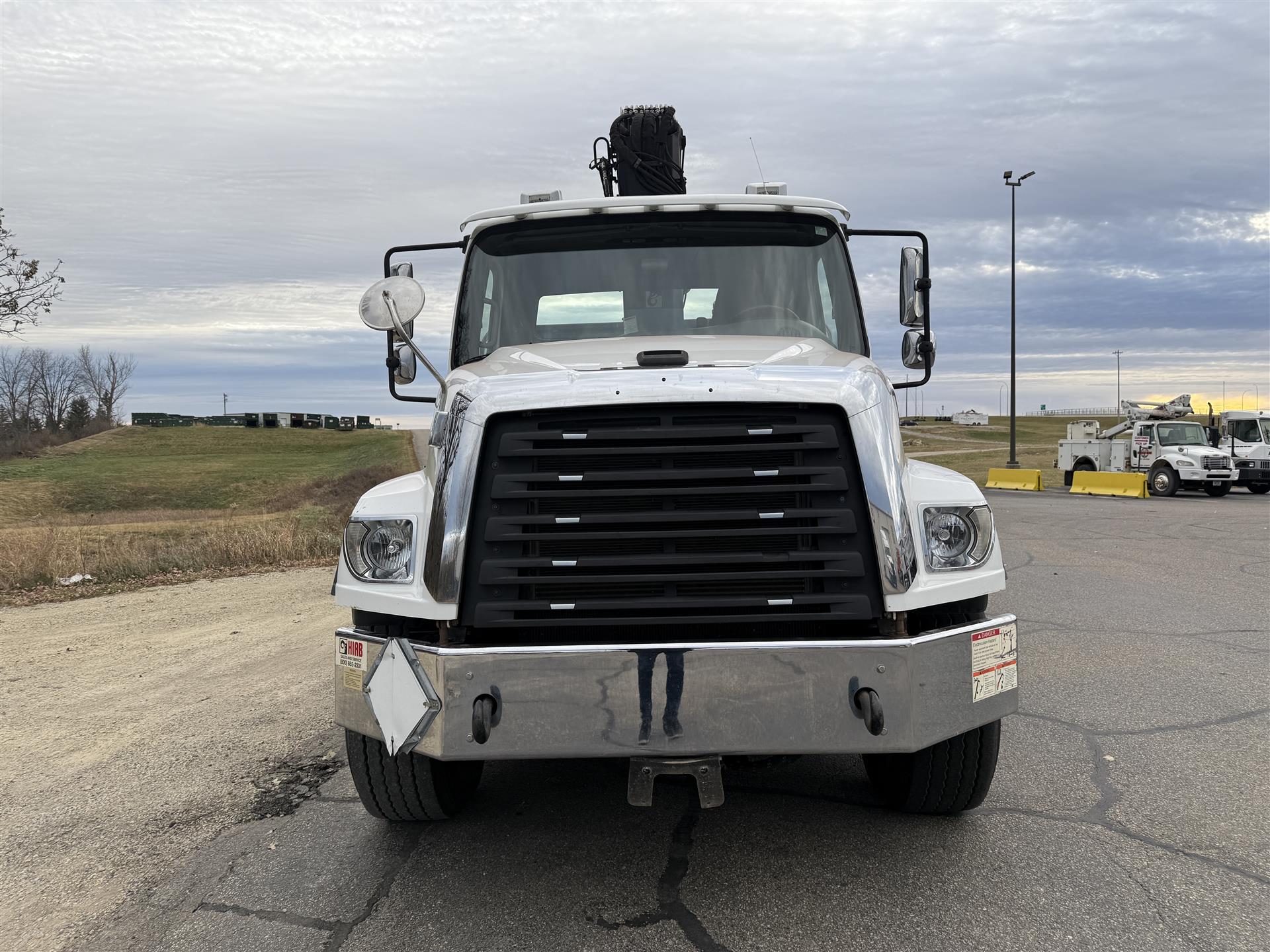2018 Freightliner 114SD Boom Truck, 101,839 Miles, Detroit DD13 Engine, 410 HP, Allison 4500RDS Automatic, 277" Wheelbase, 4.10 Ratio, Chrome Bumpers, Hood Mirrors, Dual Chassis-Mounted Tool Boxes, HIAB 335 K-4 HIPRO Boom, Power Mirrors/Locks/Windows, Air-Ride Drivers Seat, AM/FM/XM/BT Radio. |